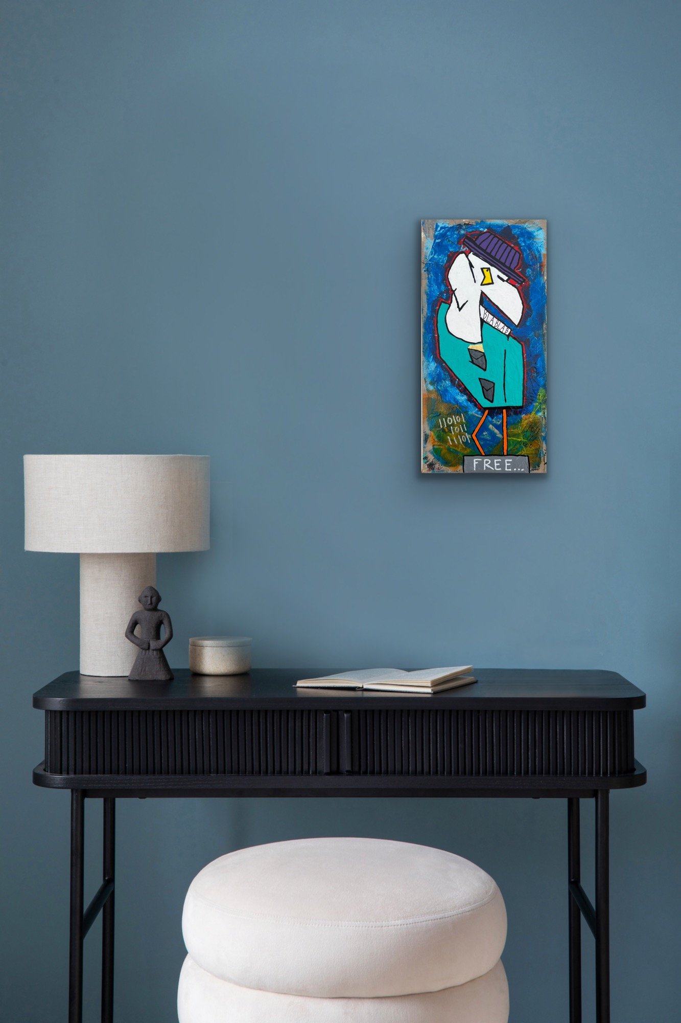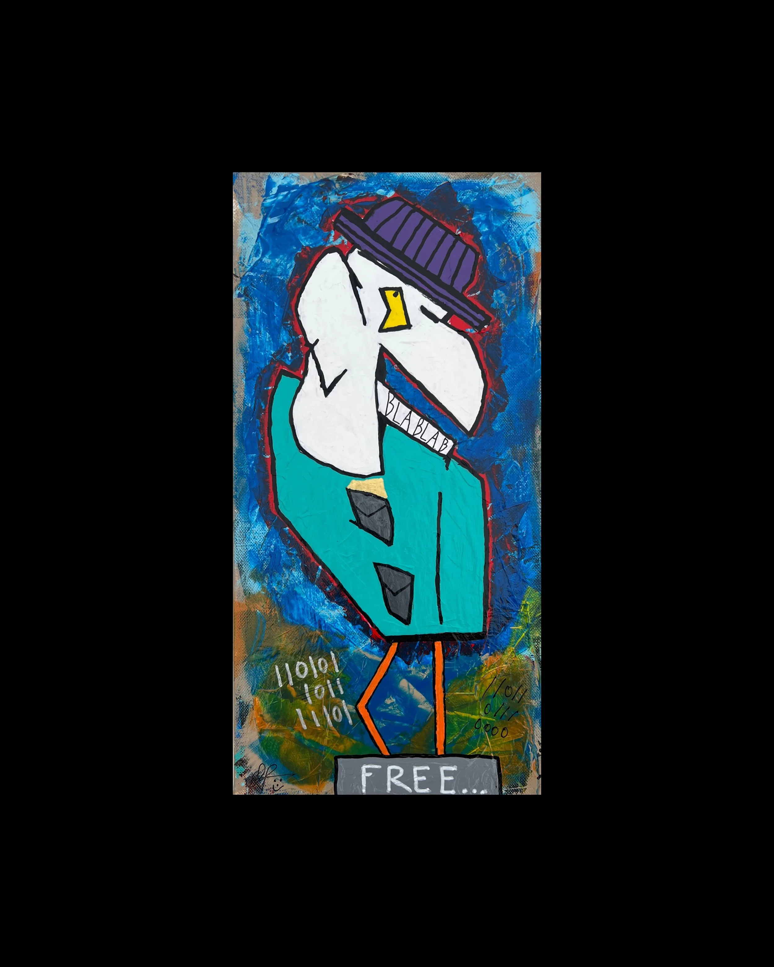 Billedet sætter spørgsmåltegn ved, hvad frihed er. Ofte bliver den frihed vi stræber efter en klods om benet.
